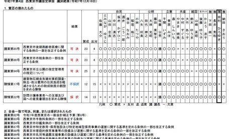 第4回定例会議決結果一覧 公園指定管理の議案、陳情等で賛否割れる